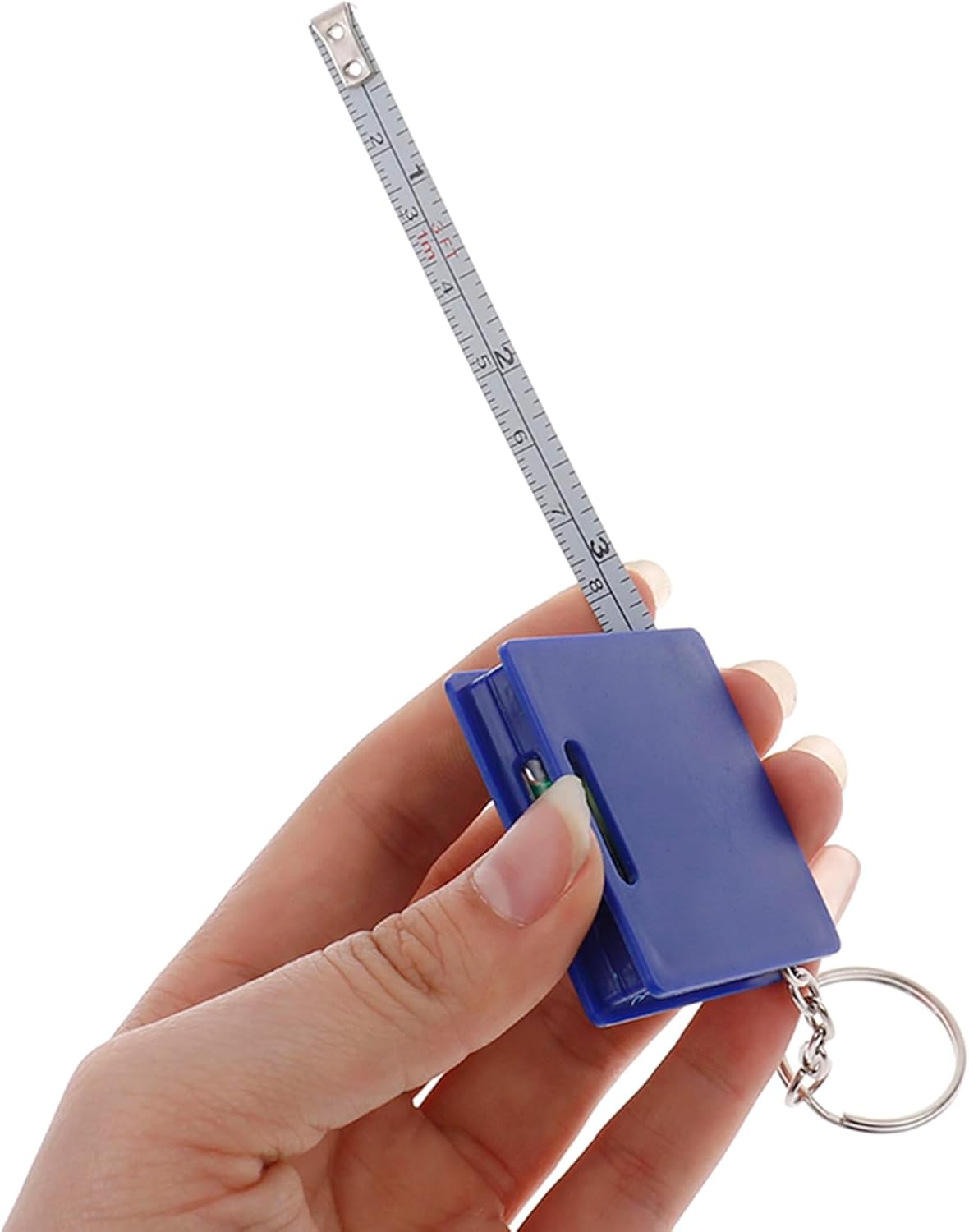 - This multifunctional keychain with a horizontal bubble and small soft steel tape measure is a must-get for any DIY enthusiasts!